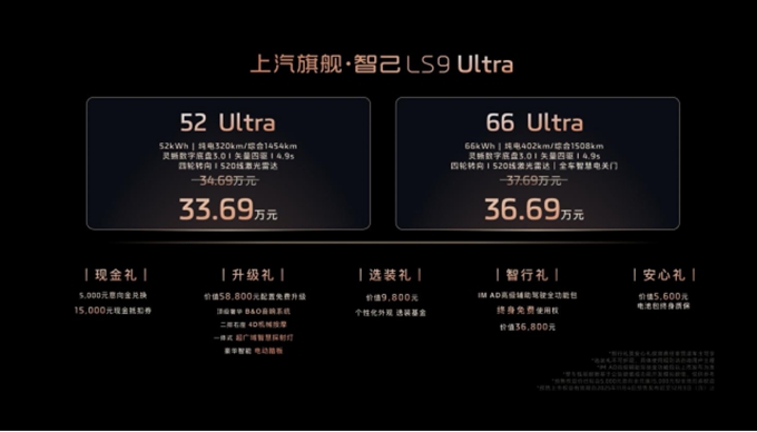 浙车网讯:11月4日,上汽旗舰·智己LS9全球首发并正式开启预售。新车重磅首发两个超级增程版本,全系皆Ultra:52 Ultra版,预售权益价33.69万元;66 Ultra版,预售权益价36.69万元。作为汇聚上汽集团70年造车底蕴,集全球顶尖技术打造的旗舰之作,智己LS9以“两大跨代际硬核科技+两大智能时代最强创新”的绝对实力,一举颠覆30万级大六座SUV市场格局,正式宣告9系新王诞生!