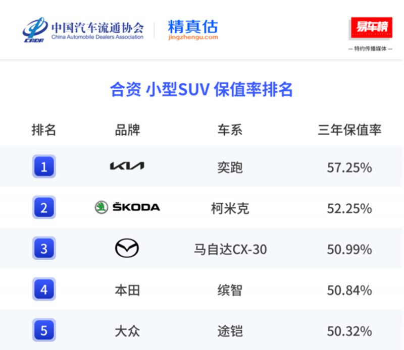 近日,中国汽车流通协会联合汽车数据服务平台精真估发布了《2025年度中国汽车保值率研究报告》,起亚奕跑三年保值率依然高达57.25%,稳居合资品牌第一、全系车型第二,进一步验证了消费者对其品质的认可与信赖。